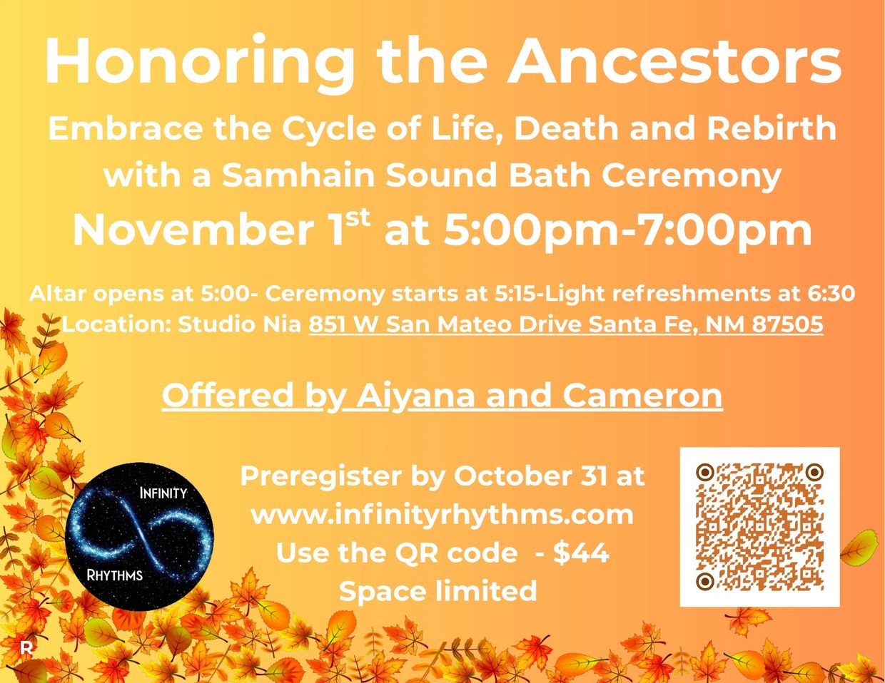 Arrive in reverence and set your intentions. Add a photo, letter, or small token to the communal altar as we honor our ancestors and the lessons of the year past.